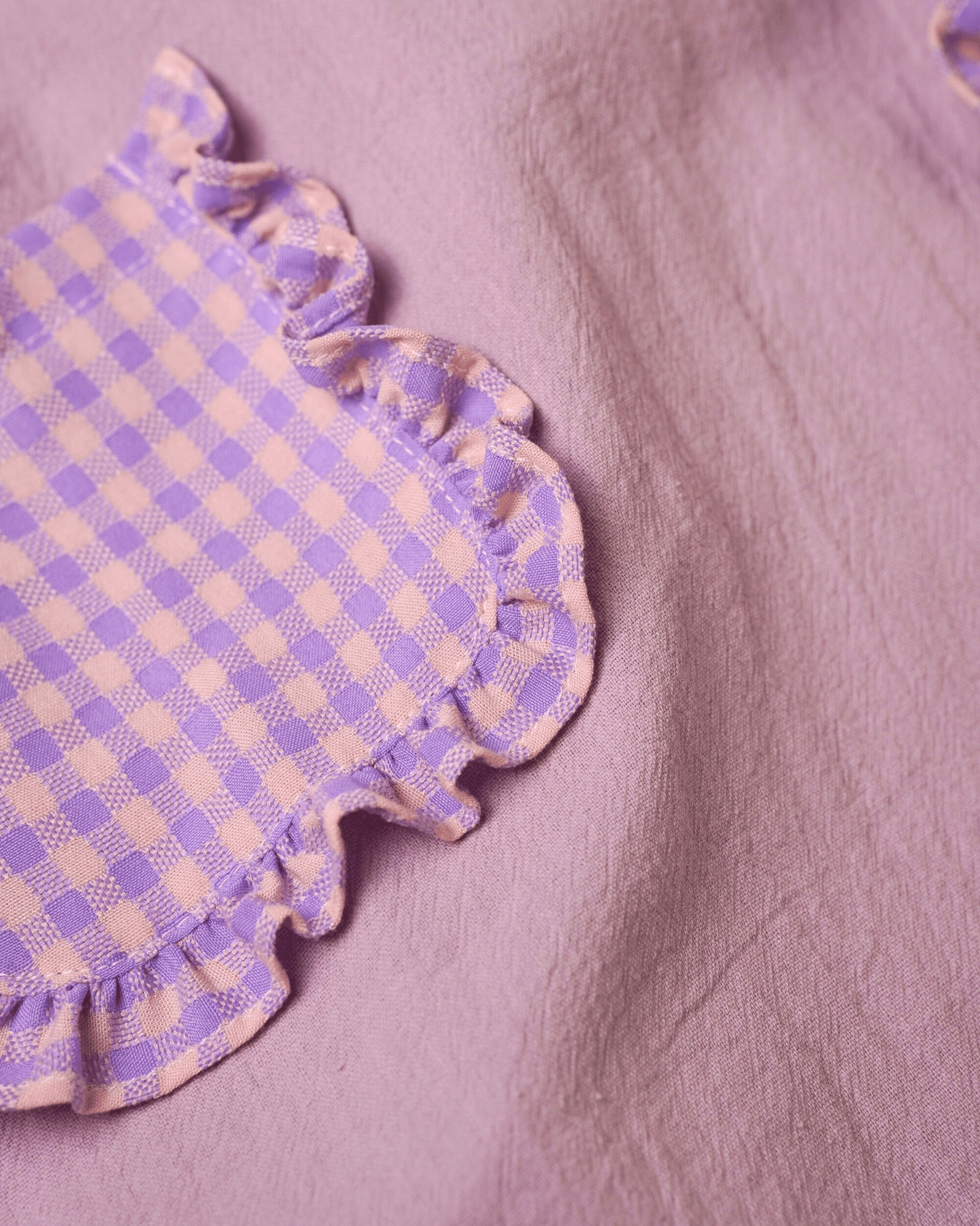 Ruffled shoulder straps and gingham pockets for a charming touch