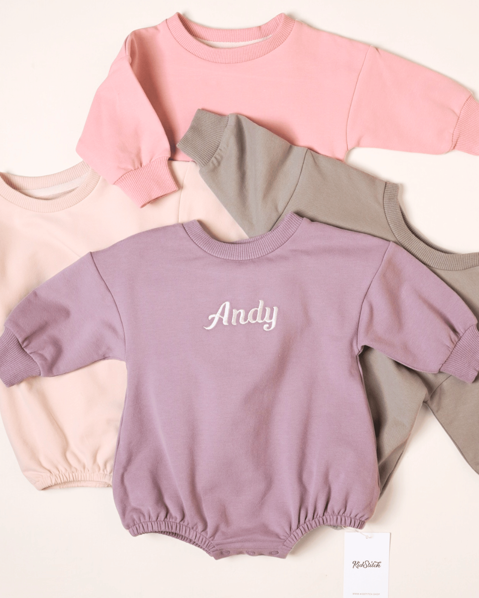 Light, playful and made just for them. This personalized bubble romper is the perfect blend of softness and charm. Thoughtfully crafted from a premium 95% organic cotton and 5% spandex blend, it offers gentle stretch that moves with every wiggle, crawl and cuddle.